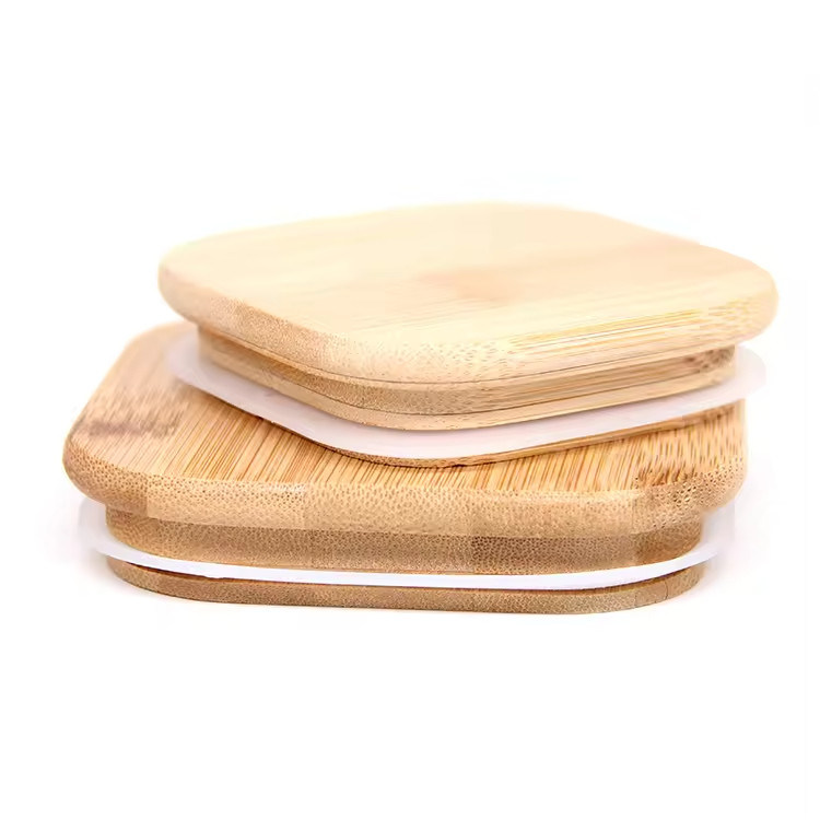 工場カスタムロゴ無垢材ボトル木製丸型正方形マグカップ蓋竹カバー付きジャー